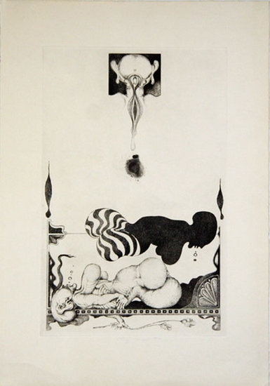 Narzißchen und ihr Schutzheiliger. [1967]. [Signierte Original-Radierung / signed original etching].